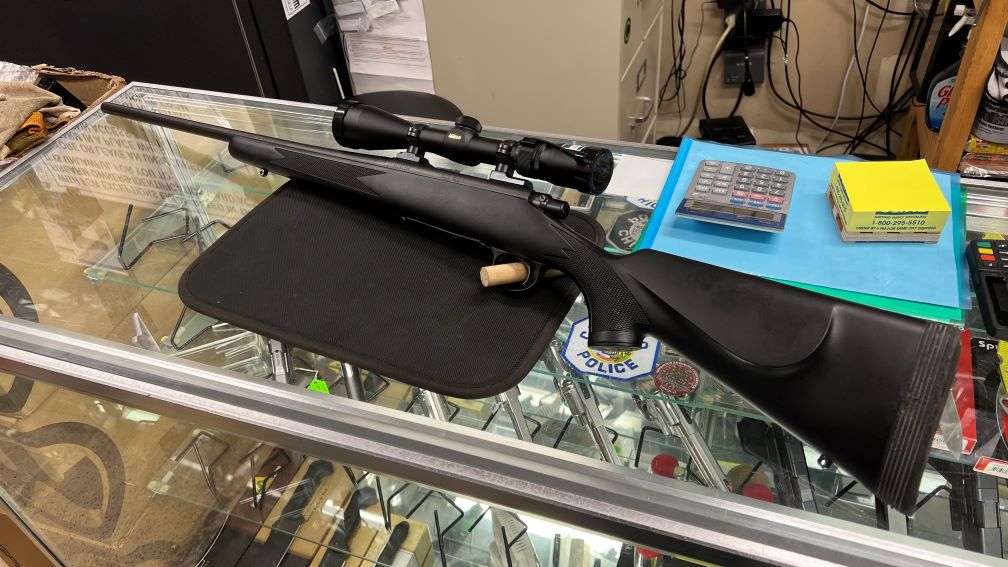 Used and in Very Good Condition. Gun comes with a Nikon ProStaff 4x9 variable power scope with the preferred Bullet Drop Compensator reticle. Gun has approximately 40 rounds down the barrel.